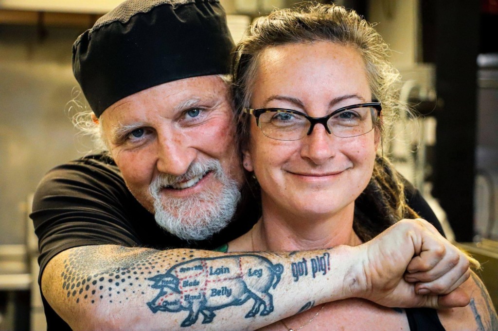 I love working together because we are an odd pair. His part of the business is more physical and mine more mentally challenging but, our talents complement each other well. We both work super hard and are together most hours of the day. However, we rarely bicker and when we do its short-lived and we shrug it off and laugh. We refer to ourselves as an anomaly because we rather pull together and figure it out then argue as married couples tend to do. We have managed to turn a food truck into a restaurant and catering business that sustains both of us and 24 employees.